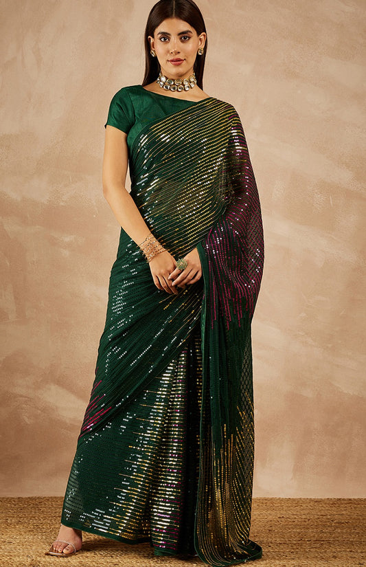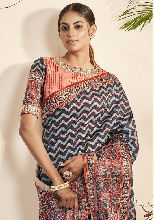 Blue Bhagalpuri Silk Stone Work & Hand Work Saree
