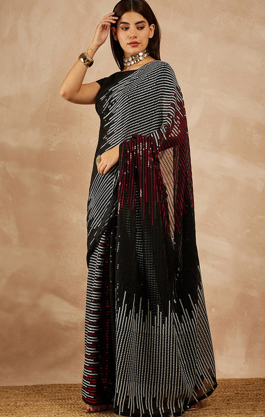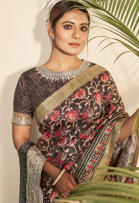 Brown Bhagalpuri Silk Stone Work Border Saree