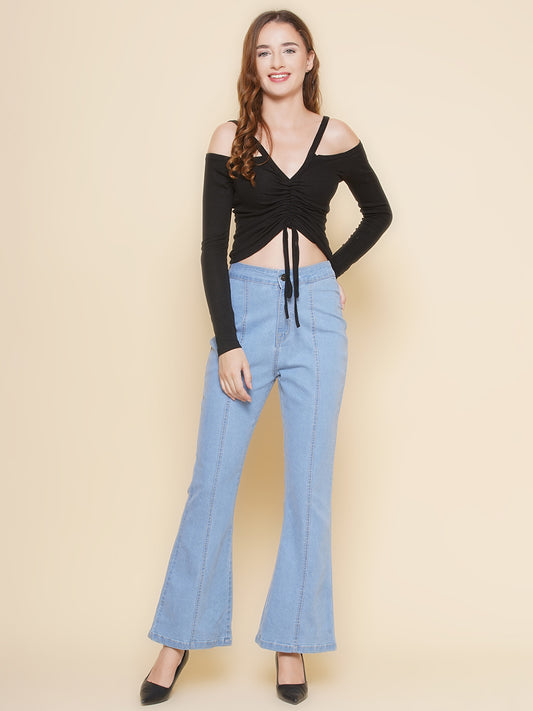 Charcoal Grey Women's Straight Knee Slit Jeans