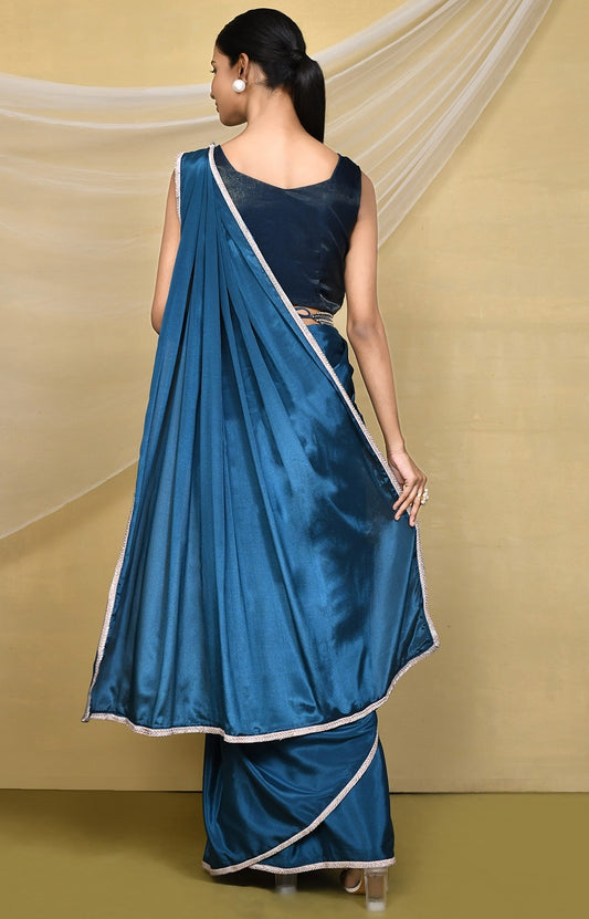 Light Blue Crepe Silk Satin Embroidered Designer Saree