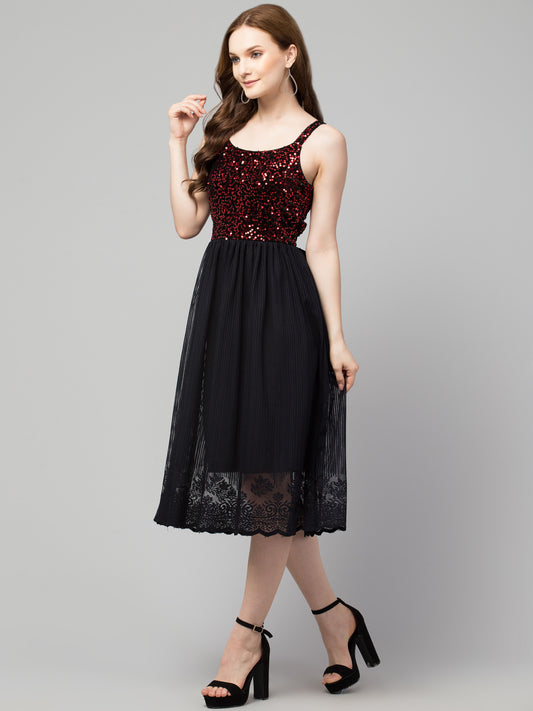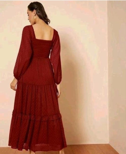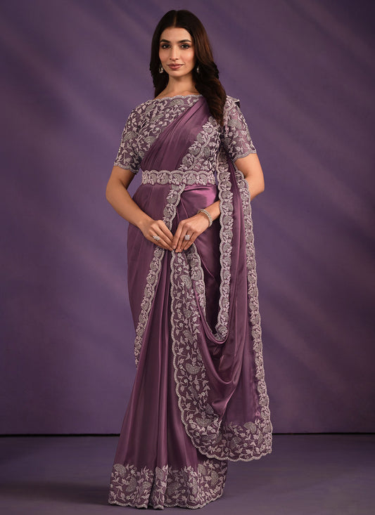 Maroon Silk Crepe Satin Embroidered Designer Saree