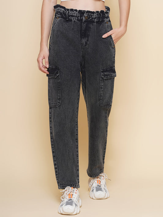 Wide Leg Multi Pocket Cargo Jeans in Light Blue