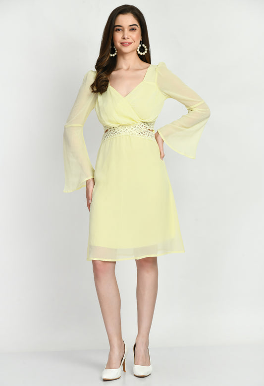 Yellow Chiffon Lace Work Girls Dress with Lining