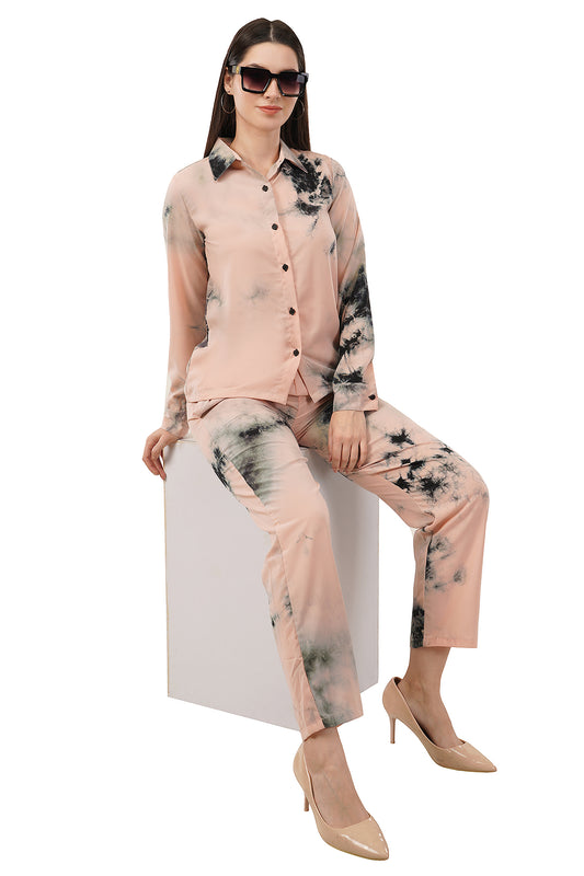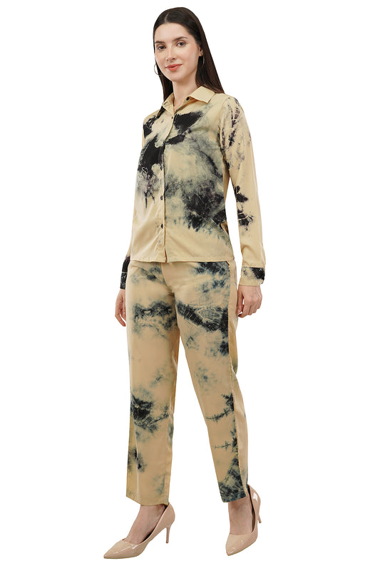 Beige Tie Dye Printed Imported Fabric Cord Set
