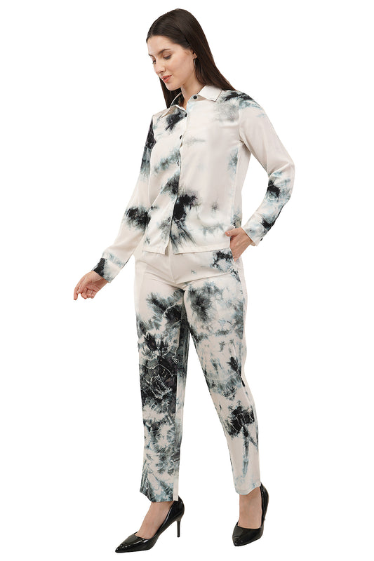 White Tie Dye Printed Imported Fabric Cord Set