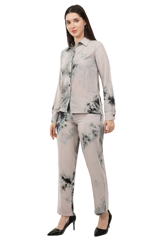 Grey Tie Dye Printed Imported Fabric Cord Set