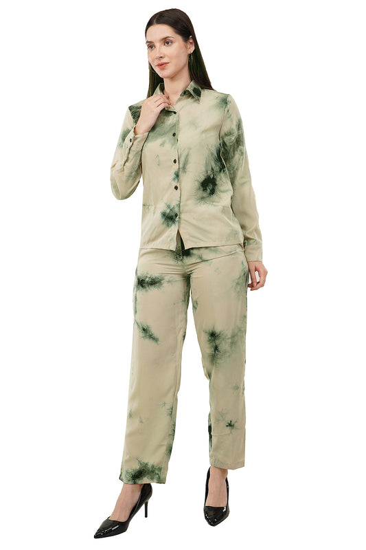 Olive Tie Dye Printed Imported Fabric Cord Set
