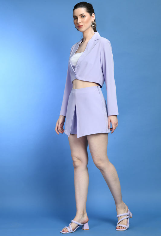 Purple Cropped Blazer & Skirt Co-ord Set
